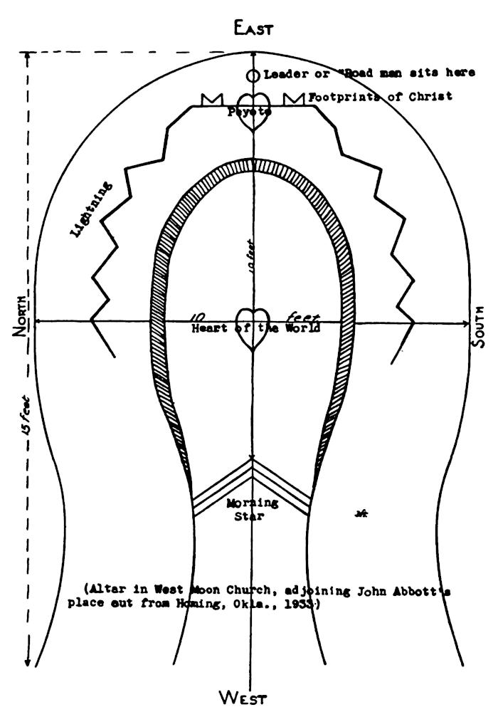 The Caddo-Delaware John Wilson had peyote visions that led him to modify the altar and ceremony; this new form has spread to the Caddo, Delaware, Quapaw, Osage and others. Wilson was one of a long line of Indian prophet-messiahs, and his “moon” has been somewhat exploited economically. The Oto teacher, Jonathan Koshiway, founded a Christianized version of peyotism which spread to the Omaha, Winnebago and others. An organization of confederated tribes known as “The Native American Church” grew out of Koshiway’s “Church of the First-born” (which latter spread to Negro groups also). The cult has had considerable legal difficulties.
