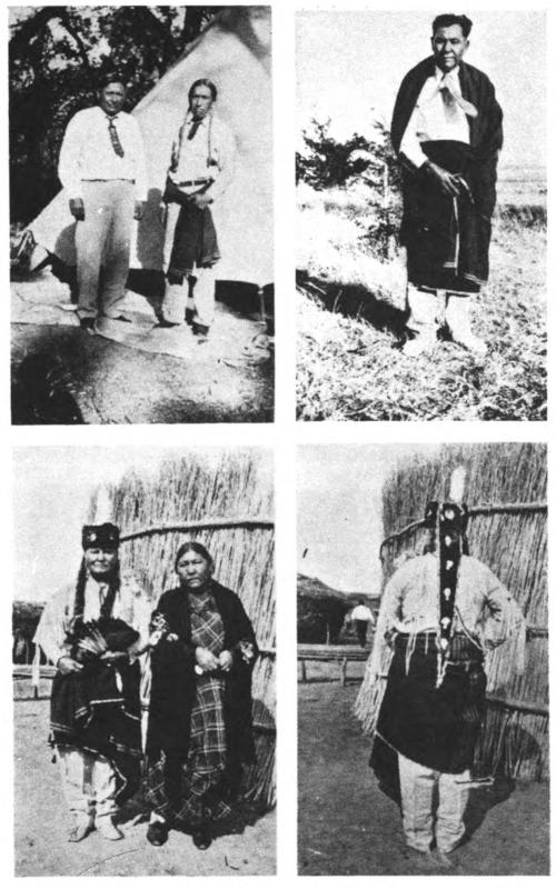 Plate 1. Peyote leaders. Upper left, Charley Apekaum (Kiowa) and Jonathan Koshiway (Oto); upper right, Alfred Wilson (Cheyenne) twice president of the Native American Church; lower left and right, Packing-Stone (Kiowa) a “Ten-Medicine” keeper and peyote leader in typical leaders’ costume of blanket and buckskin clothes; the headdress is old Kiowa.
