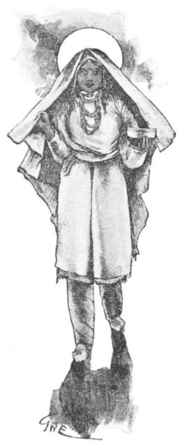 There seemed to be some spell about these Ogres—besides their frequent hungry spells—for the Pueblos, who were so brave in the face of other foes, never dared fight these terrible cave-dwellers. They continued to devastate the village, until babies were at a premium, and few to be had at any price; and the only way the people dared to try to circumvent them was by strategy. In time it came about that every house where there were children, or a reasonable hope of them, had secret cubby-holes back of the thick adobe walls; with little doors which shut flush with the wall and were also plastered with adobe, so that when they were shut a stranger—even if he were a sharp-eyed Indian—would never dream of their existence. [Pg 218] And whenever arose the dreaded cry, “Here come the T’ai-kár-nin!” the children were hustled, shivering and noiseless, into the secret recesses, and the doors were shut. Then Mr. Ogre could come in and peer and sniff about as he liked, but no chance to fill his market-basket could he find. And when parents were forced to go away and leave the babies behind, the poor young ones were inclosed in their safe but gloomy prisons, and there in darkness and silence had to await the parental home-coming. These inconveniences were gladly borne, however, since they preserved the children—and we all know that preserved baby is better than baby-stew. It was, of course, rather rough on the Ogres, who began to find all their belts most distressfully loose; but no one seemed to consider their feelings. They were pretty well starved when the Spaniards came and delivered the suffering Isleteños by driving off these savage neighbors. This looks suspiciously as if the whole myth of the Ogres had sprung from the attacks of the cruel Apaches and Navajos in the old days.