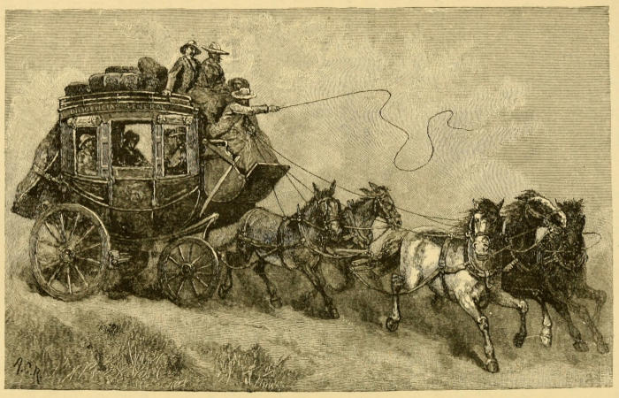 The night journey returning by stage to Benson was enlivened by more shooting stories. I heard, among others, of the doings of the late Brazelton of Tucson, and at Tucson I bought his photograph, taken, after death, in his mask and other paraphernalia of his craft. He robbed stages for years while apparently working quietly as a hostler in a corral. He was finally tracked to his fate through some peculiar marks of the horse he rode.