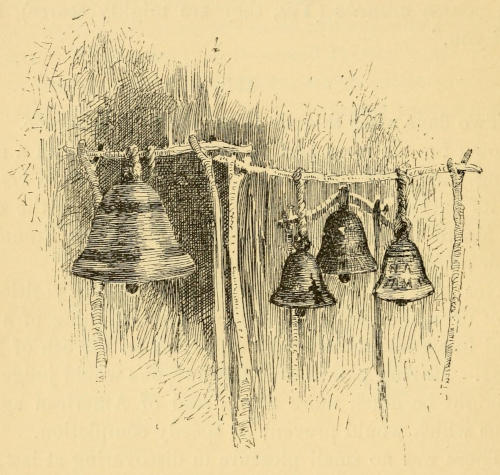 All within is of a mediæval richness and obscurity. All without is broad sunshine falling upon the peaceful Papago village. A few old men trudge about, concerning [509]themselves with their bake-ovens and some water-jars and strings of dried squashes, and women pass by with tall loads of hay and other produce carried in the kijo, a singular hamper of sticks and netting, on their backs. Nobody concerns himself about visitors, except a foolishly smiling boy, one Domingo, who has brought us the key.