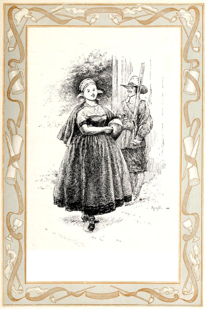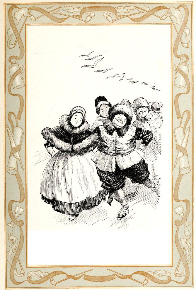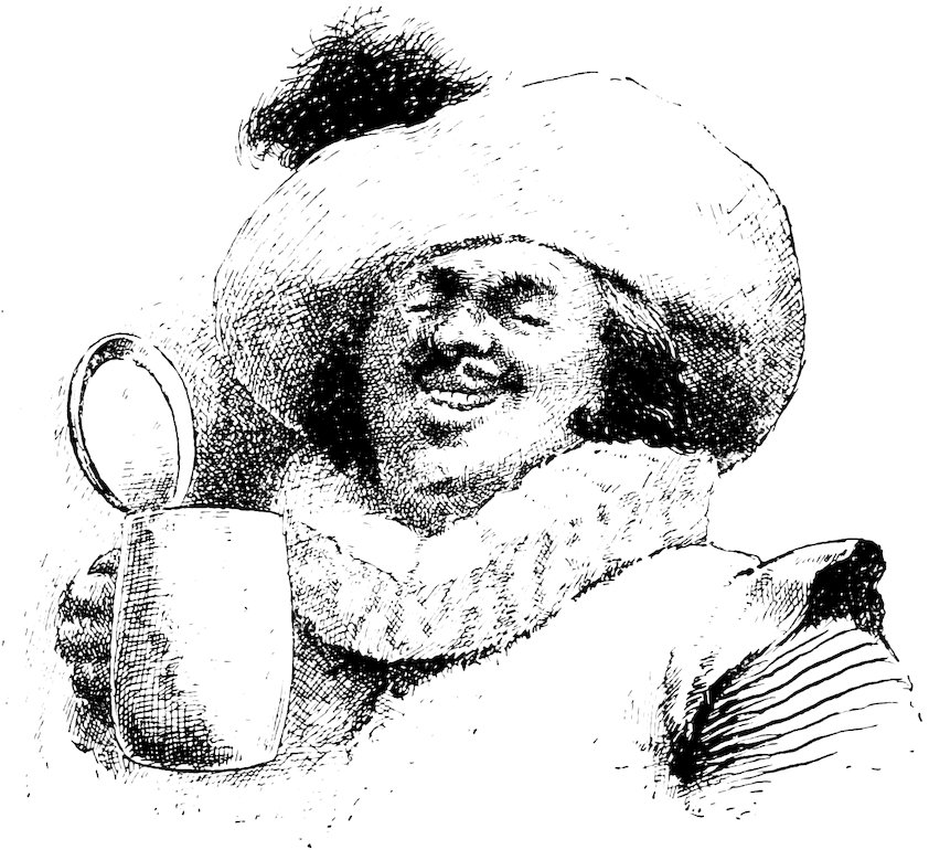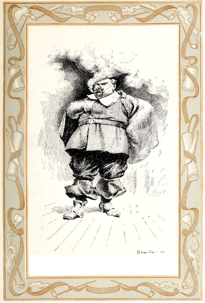 This sounder of brass was moreover a lusty bachelor, with a pleasant, burly visage, a long nose, and huge whiskers. He had his little bowerie, or retreat, in the country, where he led a roistering life, giving dances to the wives and daughters of the burghers of the Manhattoes, insomuch that he became a prodigious favorite with all the women, young and old. He is said to have been the first to collect that famous toll levied on the fair sex at Kissing Bridge, on the highway to Hell-gate.[35]