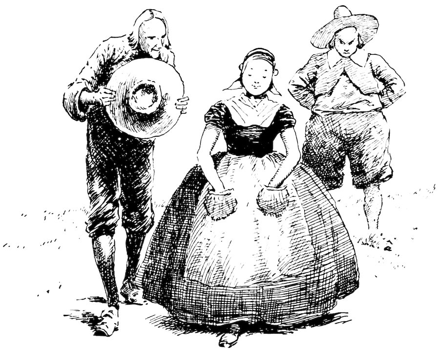 Here he was encountered by a host of Yankee warriors, headed by Preserved Fish, and Habakkuk Nutter, and Return Strong, and Zerubabbel Fisk, and Determined Cock! 362at the sound of whose names Stoffel Brinkerhoff verily believed the whole parliament of Praise-God Barebones had been let loose upon him. He soon found, however, that they were merely the “selectmen” of the settlement, armed with no weapon but the tongue, and disposed only to meet him on the field of argument. Stoffel had but one mode of arguing, that was, with the cudgel; but he used it with such effect that he routed his antagonists, broke up the settlement, and would have driven the inhabitants into the sea if they had not managed to escape across the Sound to the mainland by the Devil’s stepping-stones, which remain to this day monuments of this great Dutch victory over the Yankees.