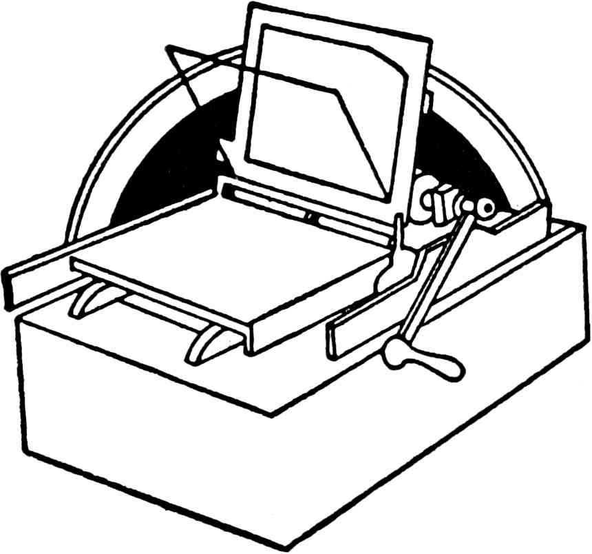 The manager of the type-foundry liked the looks of this youth who had such sound business qualities. He went with him through the salesroom and showed him the press and other material, and annotated what Harry selected for purchase. The press was of interest to the youth, as they had a cylinder press in the office where he had worked, while this army press looked scarcely too heavy to be tucked under the arm of a strong man to be carried in that manner. It consisted simply of an iron bed for the type-form to rest on, while by turning a crank at one side, the bed and form were moved from one end of the iron frame to the other, passing at the same time underneath an iron [24] cylinder about five inches in diameter, this making sufficient pressure on the paper placed on the type and held in place by a thin metal flange around the edges, called a friskit, to print the paper very nicely. The type first had to be inked by hand, so an ink-roller was necessary, and this was added to the list of material for the outfit.