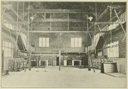At Wood Island Park, in East Boston, another outdoor gymnasium and playground, nine acres in extent, was opened September 6, 1895. Men were admitted on four days of the week, and women on two. Beginning in 1896, and with the effective coöperation of Mayor Josiah Quincy (1895-1899), there was a rapid expansion of public facilities for recreation of all sorts in and about Boston, [342]including playgrounds, indoor gymnasia, beach baths, floating bath-houses, swimming pools and all-the-year baths, and provision for skating and coasting in winter. This whole series of progressive steps is outlined in Joseph Lee’s “Constructive and Preventive Philanthropy” (New York, The Macmillan Co., 1902), along with corresponding steps in other cities, and details will be found in reports of the Boston Park Commissioners, the Boston Department of Baths, and for the North End Playground the instructive annual reports of the Massachusetts Civic League (after 1900). The first municipal indoor gymnasium was the East Boston (Paris Street) building, a one-story, truss-roofed structure 137 by 98 feet, with a main hall 100 by 80 feet. Originally a skating rink, it was purchased by Esther P. (Mrs. Daniel) Ahl and turned over to the East Boston Athletic Association for use as a combined gymnasium and bath, and in 1897 given to the city and opened to the general public. The South Boston (D-Street) gymnasium, the first to be built by the city, was opened in the winter of 1899-1900.