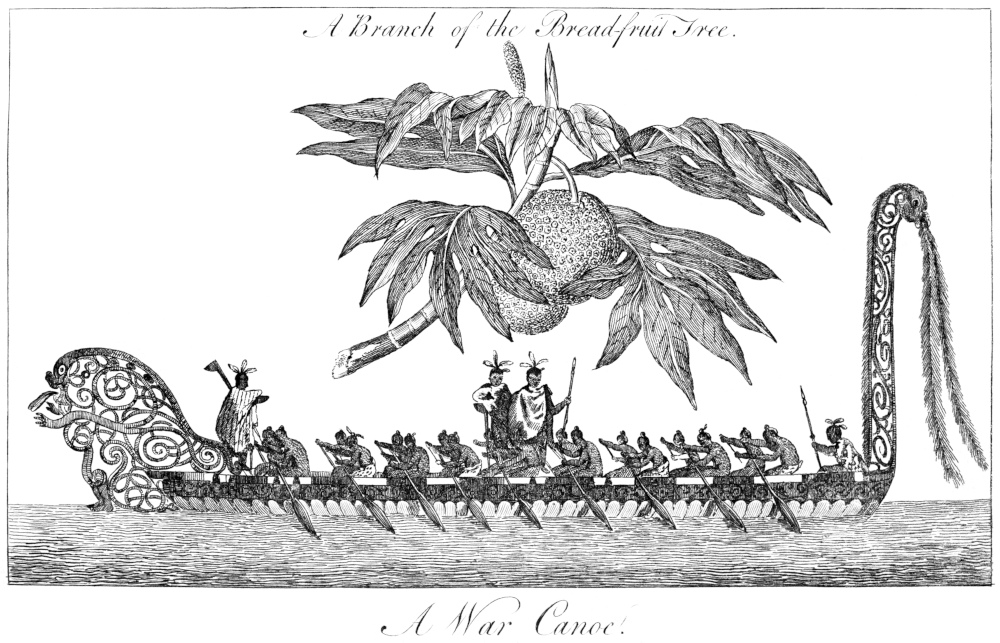 The natives have no tools but a wooden mallet, a kind of wedge, and an adze, made of stone, with some pieces of coral and shells, which may possibly be applied to the purposes of cutting. They polish the points of their lances, and their throwing-sticks, with the leaves of a tree that appears to be the ficus riduola, or wild fig, which bites with a sharpness, almost equal to that of a rasp.