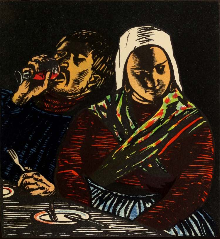 He sat down at a crowded table between a wizened, blue-bloused peasant with a cropped white head and a neck like that of a moulting parrot craning over a dingy white collar around which was tied a half-inch of black ribbon by way of cravat, and a buxom farm-wife in spotless head-gear, brilliant silk neckerchief and great gold earrings. They ate lusciously with great clatter and prestidigitation of knives, [Pg 35]and drank the little grey stony wine, and talked of crops and cattle and marriages and deaths.