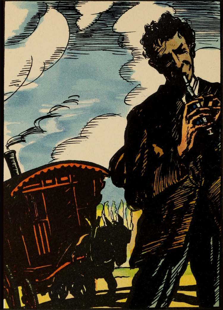 According to his duty as husband and man of grave responsibilities, he ought even now to be on his way to Paris. But he had been too weary of spirit to make the effort; at any rate too much in love with the day’s strange freedom. Besides, how could he leave caravan and horse adrift? The caravan he might have abandoned. Its value was of no [Pg 49]account to a man of his fortune. But the horse was a living thing, a creature of responsive sentiment, like a dog. It rubbed its muzzle against his arm as though to manifest fondness. He must make fair and square provision for the horse. To-night’s friendly encounter had showed him the way. To-morrow, at the fair, would he sell for a song the whole outfit to his late kindly neighbours; and then the stern and relentless journey back to England.