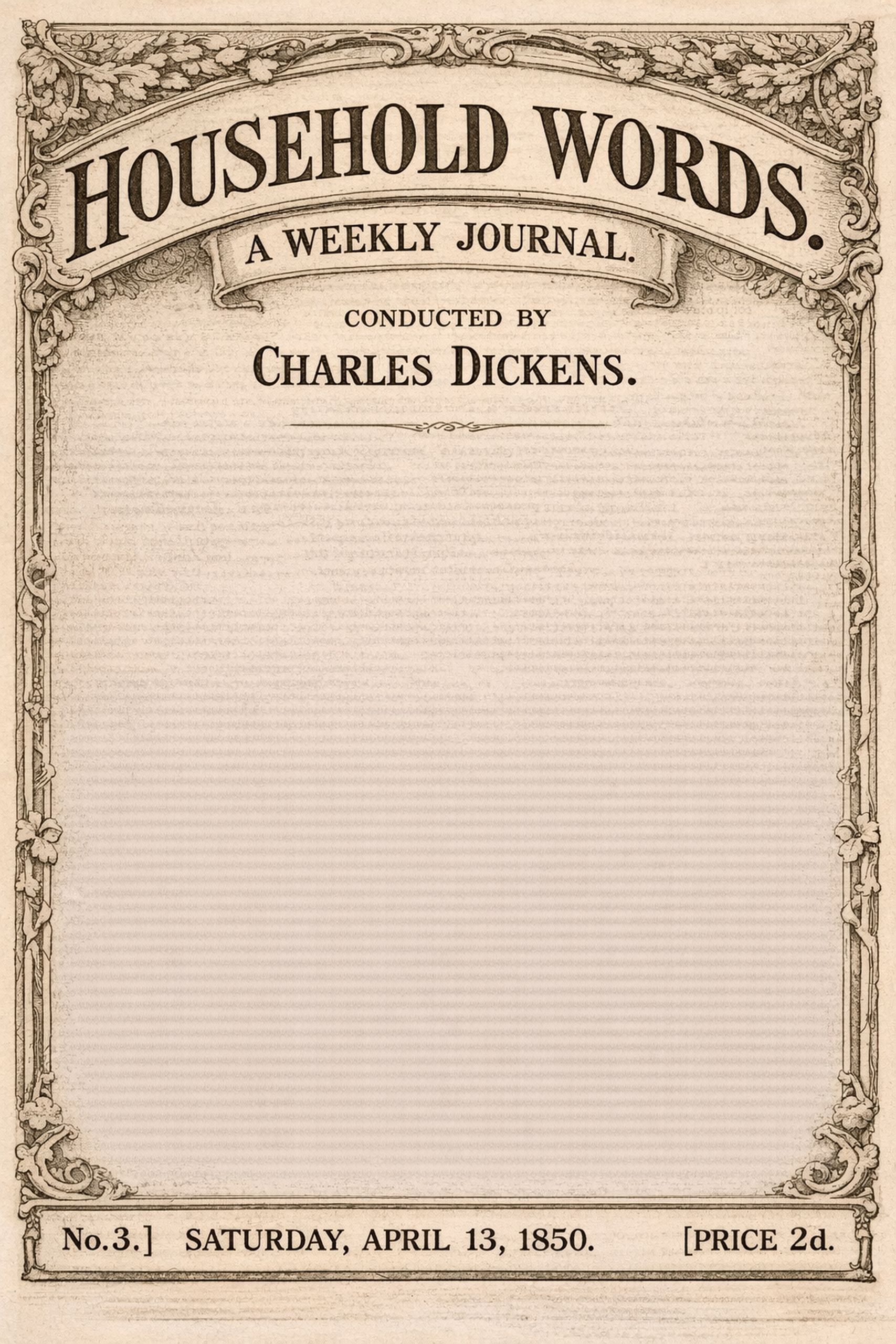 We take this opportunity of announcing a design, closely associated with our Household Words, which we have now matured, and which we hope will be acceptable to our readers.
