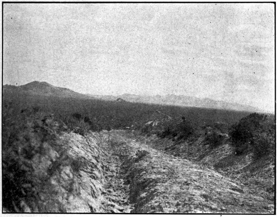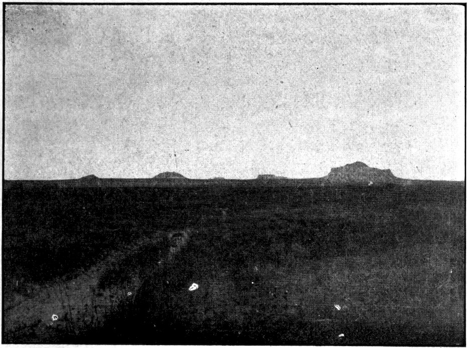 The sun’s rays became more and more scorching in their fierceness, the plains assumed a dull, leaden grayish aspect. The sagebrush and cactus took the place of the waving grass. The burning sand and stifling dust became deeper. These the west wind would raise into 366a cloud continuous from morning until night. This cloud of sand and dust particles beating against them at a terrific velocity they had to face all day. Soon eyes and lips were sore. To relieve the uncomfortable feeling that the parching air gave the lips they would unwisely be moistened and the soreness thus extended and deepened. Soon everything was obdurately begrimed. Rags then were in evidence. Shoes worn so as to no longer protect the feet. In the dry, scorching air the wagons would develop loose joints and lose their tires.