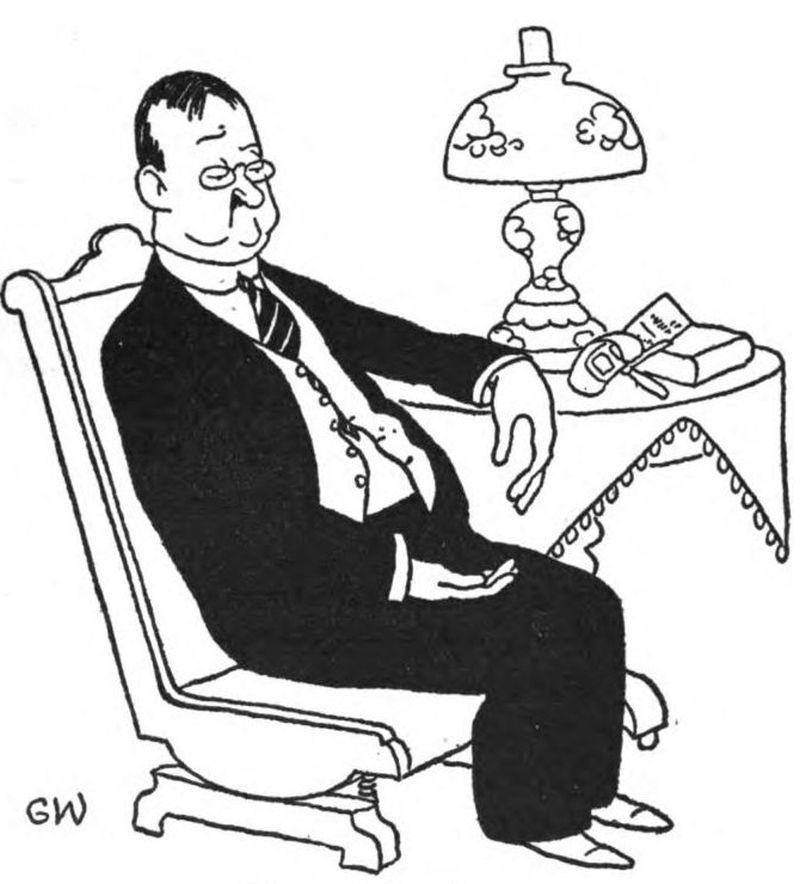 Furthermore, I am not getting fat. I always put on a little weight in the winter, because I can’t play tennis, but every one says that it is becoming to me. I weigh only 160 when I am ready for my cold-bath (which I very seldom am, these mornings) and for a man of my height, that is not a pound too much. As a matter of fact, Bobby is probably a little sore because he is so small for his age. You’d never think he was seven. He looks more like a child of three. He must get that from his mother’s side of the family, because all the Benchleys have shot right up to a good height before they were seven. His older brother Nat is a fine tall boy. And a great deal smarter in school than Bobby.