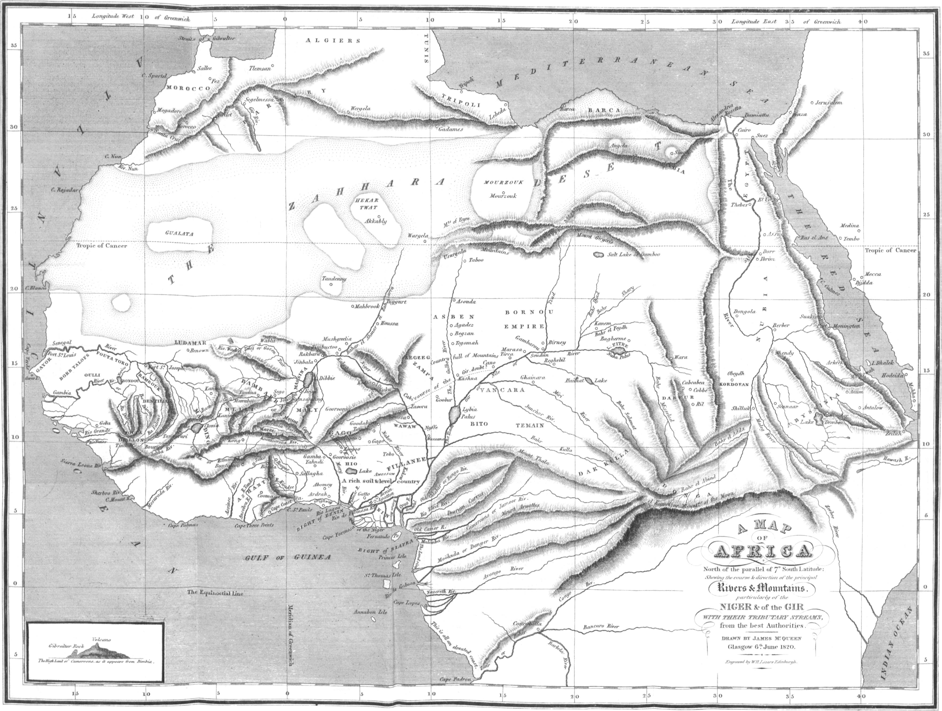 The central parts of Africa, and, in a very particular manner, the interior parts of the northern division of that great continent, together with the course and termination of the great river Niger, are still in a great measure unknown. Become the eager object of European research, these cannot much longer remain hid. It is surprising they have remained undiscovered so long. To explore and determine accurately these important points, is the most interesting geographical problem that now remains to be solved.