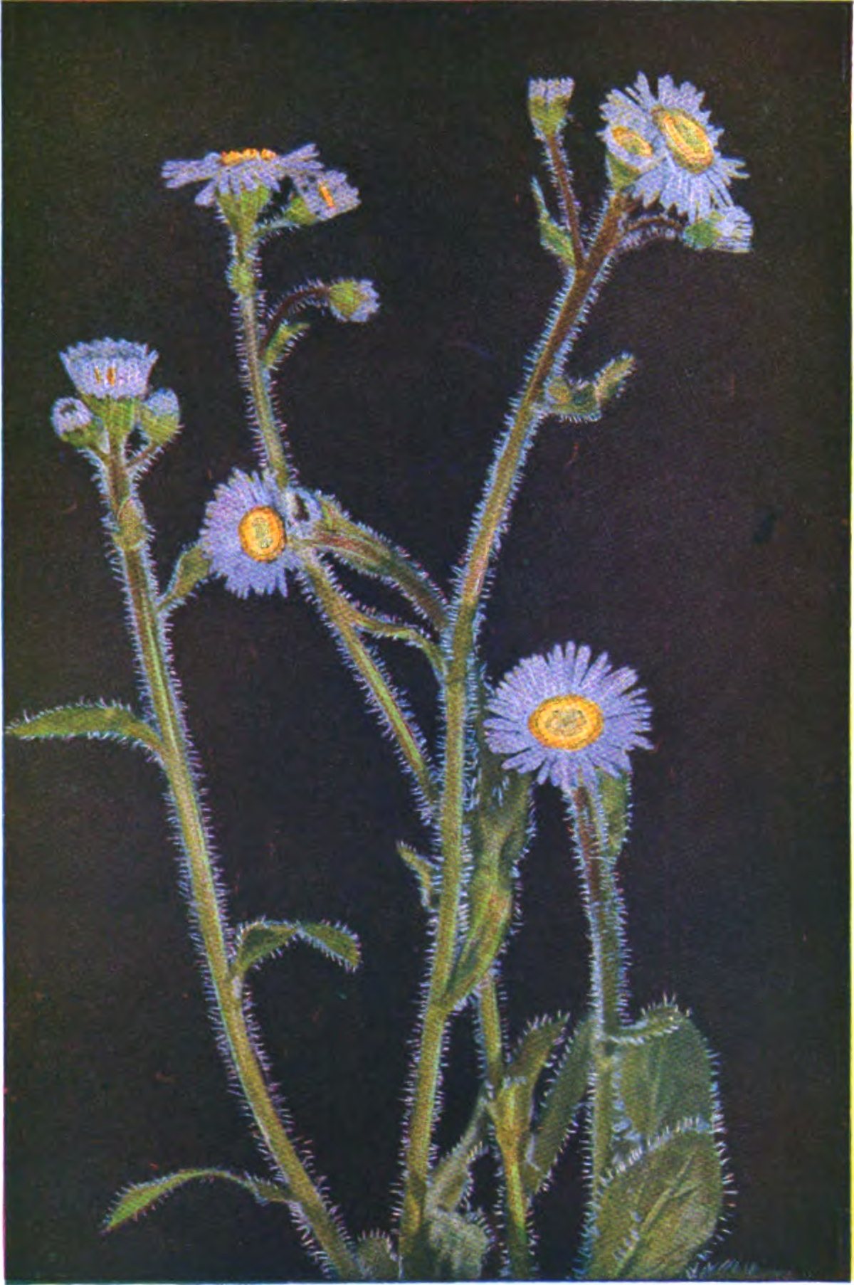 Like an aster blooming long before its season, Robin’s Plantain wears a finely cut lavender fringe around a yellow disk of minute florets; but one of the first, not the last, in the long procession of composites has appeared when we see gay companies of these flowers nodding their heads above the grass in the spring breezes as if they were village gossips.