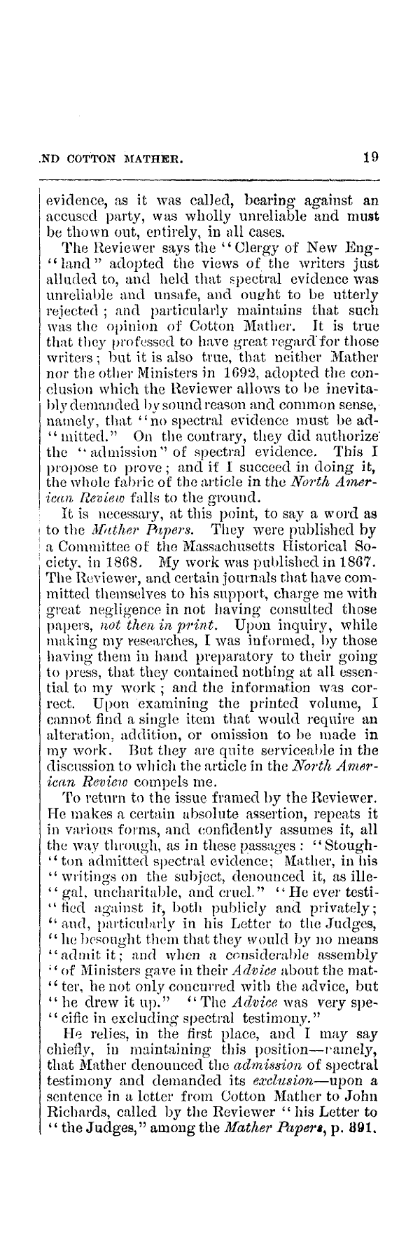 of historical perspectives and the implications of the Mathers' actions during this infamous period. The opening of this work sets the stage by recounting the catalyst for Upham's reply: a critical article published in the "North American Review" that challenged his previous writings on the Salem Witch Trials. Upham expresses the necessity of addressing historical inaccuracies related to Cotton Mather’s involvement in the witchcraft proceedings, asserting the need for clarity on the subject given the significance of the Witchcraft Delusion in America’s early history. He discusses the state of belief during the period, the influence of the Mathers on public superstition, and the societal conditions that contributed to the tragedy. Overall, the beginning establishes a foundation for Upham’s exploration of the intertwined narratives of witchcraft, religion, and historical memory, as he seeks to clarify the complexities behind one of America’s darkest episodes. (This is an automatically generated summary.)