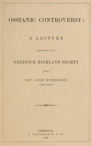 | Title | Ossianic controversy : A lecture delivered to the Greenock Highland Society |