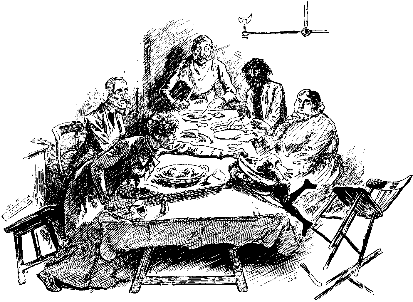 "The Living Skeleton knows that he can't expect to live long—most of them die at about thirty-five—but, for all that, he is happy and contented. 'A short life and a merry one is what I goes in for,' he often says to me, and he seems to think that his life is a merry one, though I can't myself see where the merriment comes in. So with all the rest of my people. They all seem to enjoy themselves except the Dwarf. My own belief is that the organ of happiness has got to be pretty big to get its work in, and that there ain't room in a Dwarfs head for it to work.