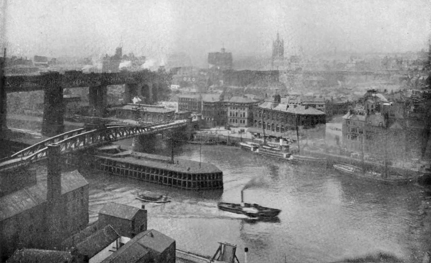 | The River Tyne at Newcastle (showing Swing Bridge Open). |