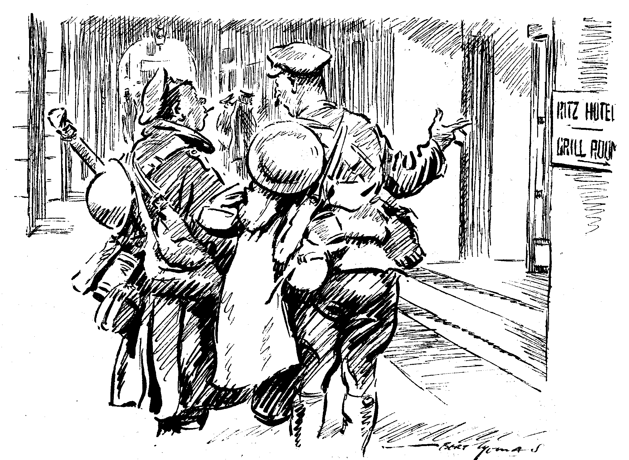 We hear that the soldier who, after being demobilised, at once returned to barracks in order to say a few suitable words to his late sergeant-major, was put off on being told that he would have to take his turn in the queue.