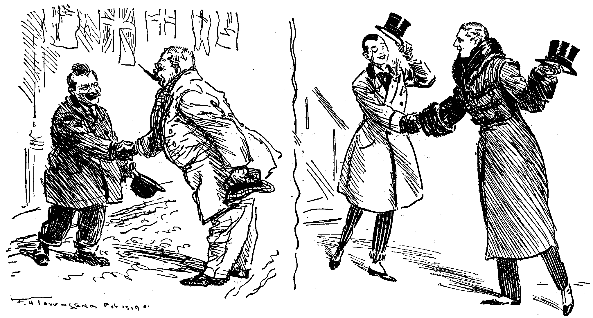 The question was still unsettled when the warrants arrived. As time was short it was finally decided that whomsoever he should follow was to be adjudged his future owner. We climbed ashore and spread out fanwise, looking back and uttering those noises best calculated to incline the unyielding heart of the Menace towards us. He himself rose from the deck and strolled on to the wharf, where he stood coolly regarding us. Without emotion his Cyclopean orb directed its gaze from one to another till, midway between the Third Hand and the Second-Engineer, it was observed to irradiate a sudden and unaccustomed luminosity.