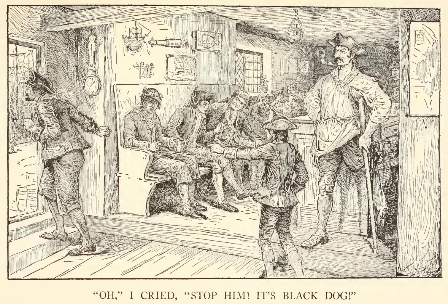 “And who else?” returned the other, getting more at his ease. “Black Dog as ever was, come for to see his old shipmate Billy, at the Admiral Benbow inn. Ah, Bill, Bill, we have seen a sight of times, us two, since I lost them two talons,” holding up his mutilated hand.