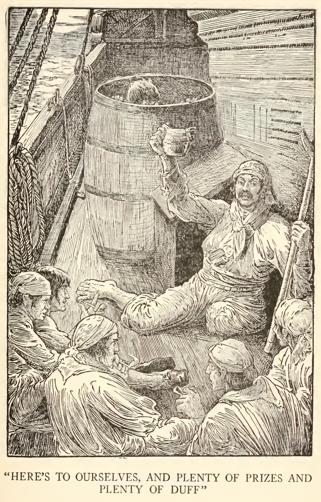 “Nobody in this here island ever heard of Darby,” he muttered; “not one but us that’s here.” And then, making a great effort: “Shipmates,” he cried, “I’m here to get that stuff, and I’ll not be beat by man or devil. I never was feared of Flint in his life, and, by the powers, I’ll face him dead. There’s seven hundred thousand pound not a quarter of a mile from here. When did ever a gentleman o’ fortune show his stern to that much dollars for a boozy old seaman with a blue mug—and him dead too?”