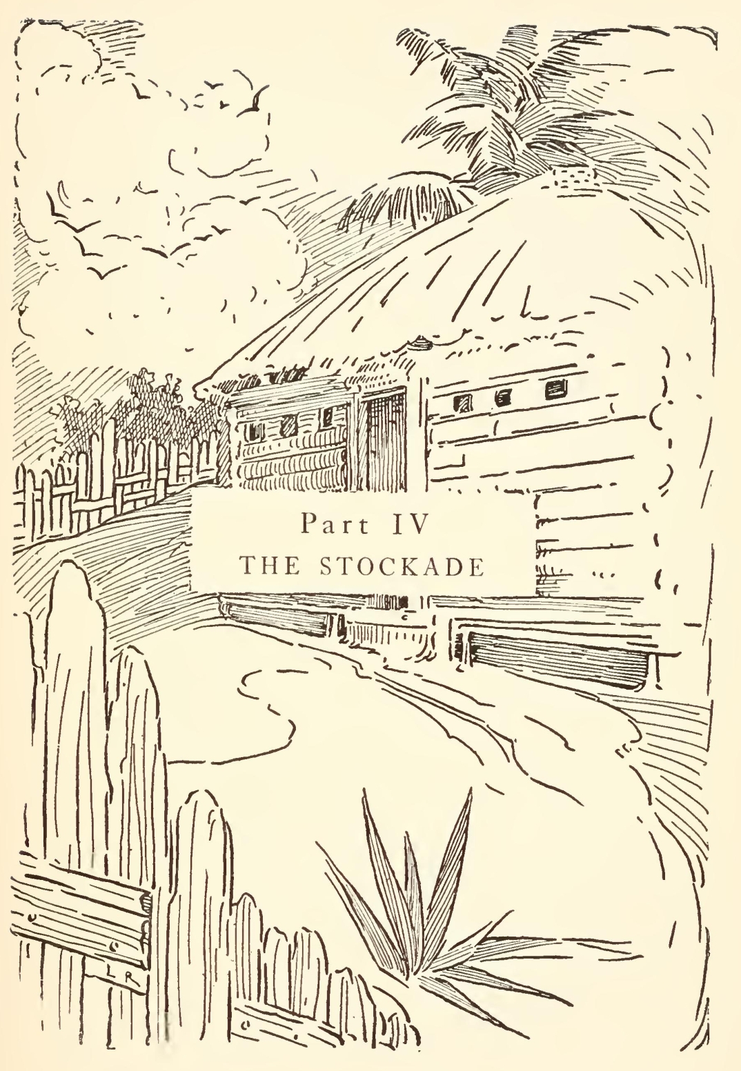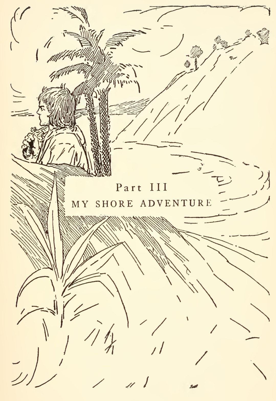 It was just at sundown when we cast anchor in a most beautiful land-locked gulf, and were immediately surrounded by shore boats full of Negroes and Mexican Indians and half-bloods selling fruits and vegetables and offering to dive for bits of money. The sight of so many good-humoured faces (especially the blacks), the taste of the tropical fruits, and above all the lights that began to shine in the town made a most charming contrast to our dark and bloody sojourn on the island; and the doctor and the squire, taking me along with them, went ashore to pass the early part of the night. Here they met the captain of an English man-of-war, fell in talk with him, went on board his ship, and, in short, had so agreeable a time that day was breaking when we came alongside the Hispaniola.