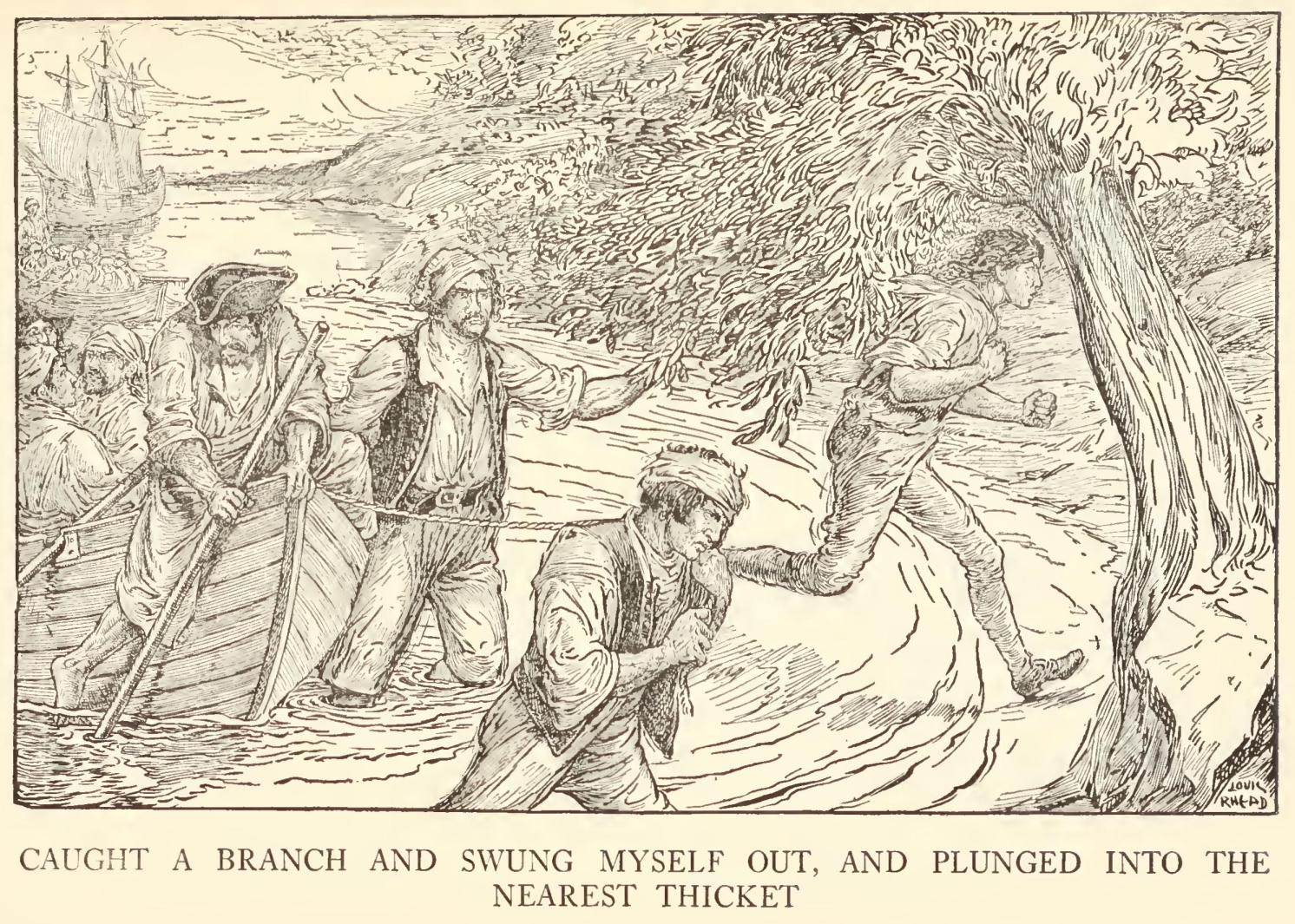 How that personage haunted my dreams, I need scarcely tell you. On stormy nights, when the wind shook the four corners of the house and the surf roared along the cove and up the cliffs, I would see him in a thousand forms, and with a thousand diabolical expressions. Now the leg would be cut off at the knee, now at the hip; now he was a monstrous kind of a creature who had never had but the one leg, and that in the middle of his body. To see him leap and run and pursue me over hedge and ditch was the worst of nightmares. And altogether I paid pretty dear for my monthly fourpenny piece, in the shape of these abominable fancies.