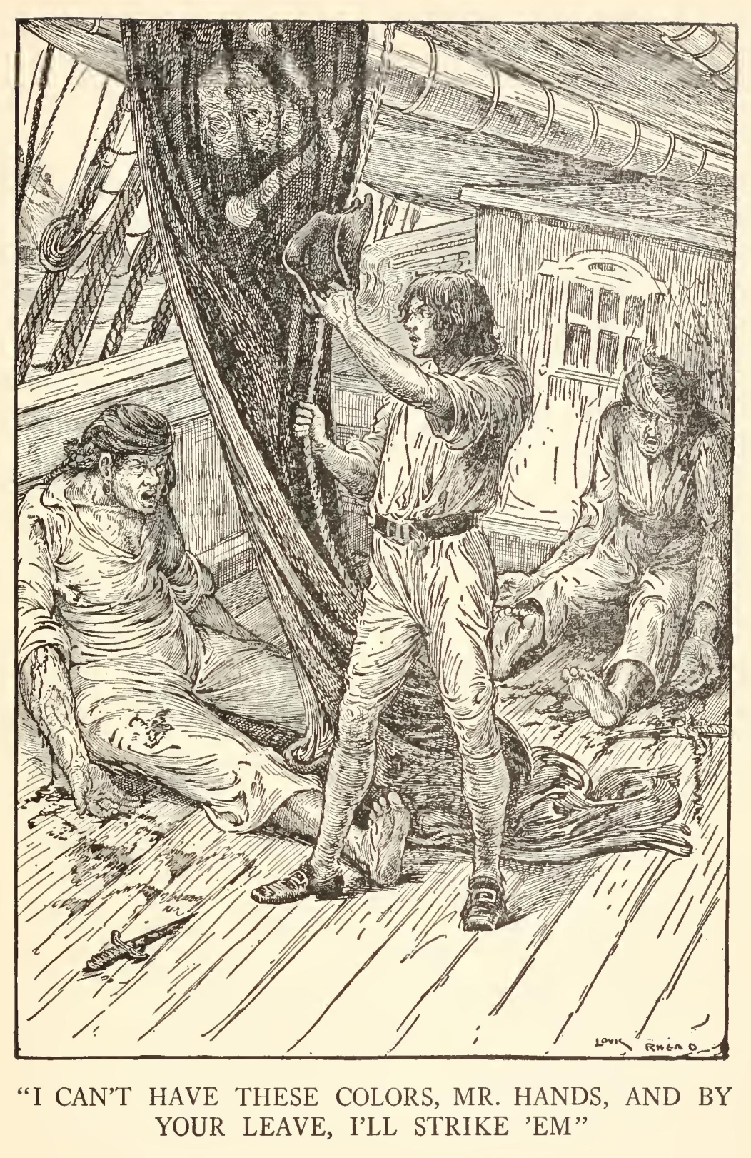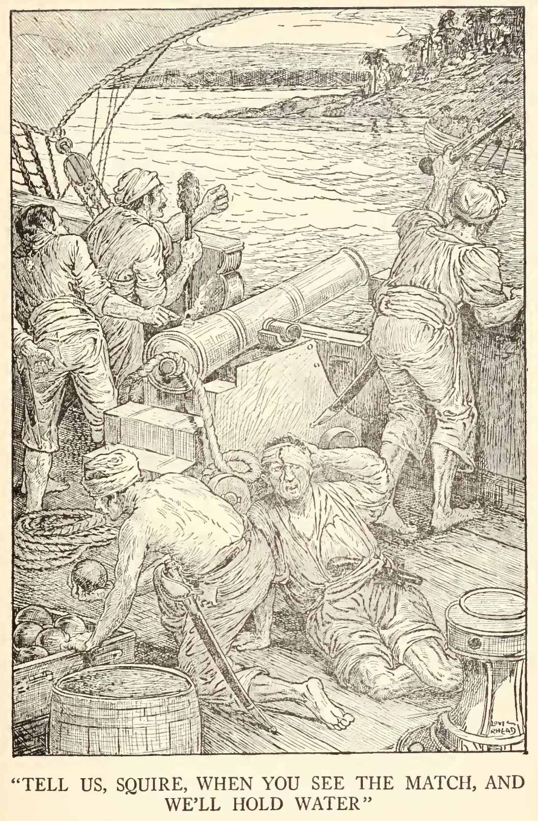 “Jim,” he said, “you’re the only one here that’s worth anything, and you know I’ve been always good to you. Never a month but I’ve given you a silver fourpenny for yourself. And now you see, mate, I’m pretty low, and deserted by all; and Jim, you’ll bring me one noggin of rum, now, won’t you, matey?”