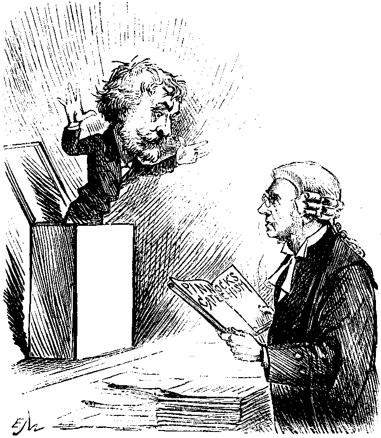Pub. Well, so may they. They're equal to taking one eye out and putting it back when the trial's over, if they thought it'd help them to get money out of us. There may be a fellow called Mr. GOBLIN somewhere, too. Oh, no; it won't do at all. All the chapters with the Ninth Goblin in must come out.
