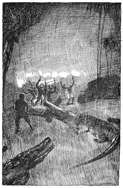 Negoro kom nu langsomt og modvilligt ud af Køkkenet; men næppe fik Hunden Øje paa ham før den foer lige løs paa ham og sprang til for at sætte Tænderne i hans Strube. Men med et Slag af en Haandspade holdt Kokken sig den fra Livet, indtil et Par Matroser havde faaet et sikkert Tag i den.