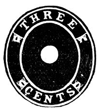 Suppose we select the "T" of "THREE" for our starting point and, noting that that letter is found in various positions, slanting to the right or left, or standing nearly vertically, we lay the edge of a fine piece of paper along the outside of the downstroke and thus virtually prolong the "T" line downward. Next we carefully note where that prolongation touches a letter in the lower label. If we find that in a number of dies the line touches the "N" of "CENTS", we have probably established a general class. Continuing our inquiry we may note that the[Pg 5] "T" line falls outside of the "N", perhaps touches the "T" or may even cut the "S" of "CENTS"; a clear indication that we have other die varieties.