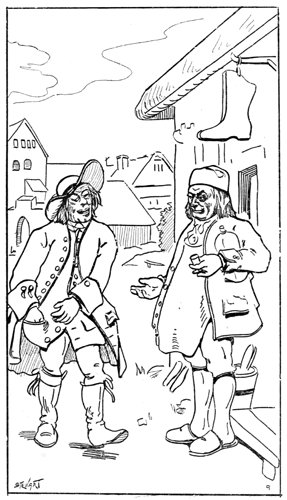 Jeppe, the principal character, is a poor oppressed peasant, abused by his wife and trodden down by his superiors. We are introduced in the opening scene to his wife, Nille, a veritable Xanthippe transplanted to the eighteenth century. With her shrill voice and stout whip,—Master Erik, by name,—she drives him out at an unreasonably early hour to go an unreasonable long distance for an insignificant amount of soap. She is, in fact, a true counterpart of Dame Van Winkle, wielding authority over a poor, weak Rip. Without so much as a cup of coffee, he starts with his dozen pence with which he is to make his purchase. On the way he stops in at the rascally innkeeper's, Jakob Skomager's, who induces the vacillating Jeppe to part little by little with his money until the poor peasant finds himself "broke," and with nothing to show for his departed coin but a "glorious drunk." After a soliloquy in which he calls to mind his past life, especially his brief experience in the army, he is overcome by his intoxication and falls in a drunken stupor by the wayside. In this senseless condition he is found by his "liege lord and master," the nobleman, and his servants. They decide to play a joke on the fellow; they dress him in the baron's clothes, take him to the castle and put him in the baron's bed, and then wait near by to see the show.