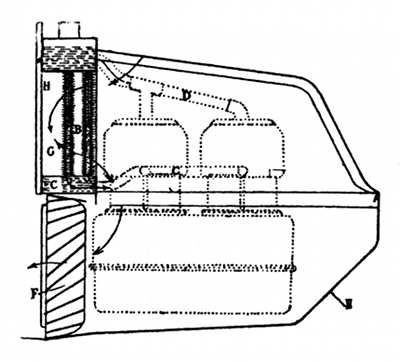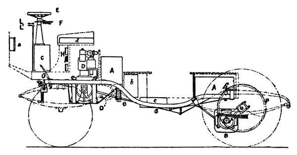 Nel primo periodo, e cioè fino al 1860, il motore a scoppio ad essenza non era ancora conosciuto; l'unico fluido impiegato era il vapore. Questa è una delle ragioni per le quali non si ebbe il progresso nelle vetture leggere; la necessità della caldaia, del motore a vapore, delle pompe d'alimentazione, non permetteva una soluzione della questione quale la permette il motore a scoppio più leggero e più semplice.