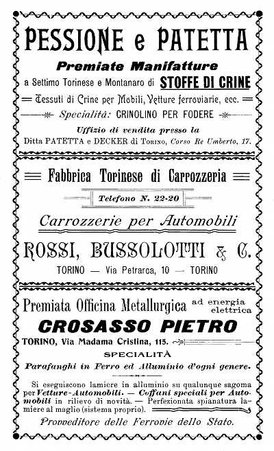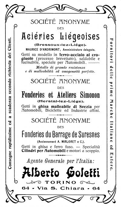 Portiamo opinione che le vetture automobili pratiche non potevano nascere prima, perchè desse, piuttosto che frutto di un'idea geniale e dell'uso dei motori a scoppio, è il risultato naturale e immediato del progresso e dello sviluppo meraviglioso della metallurgia e della lavorazione meccanica dei metalli.