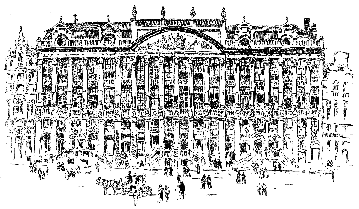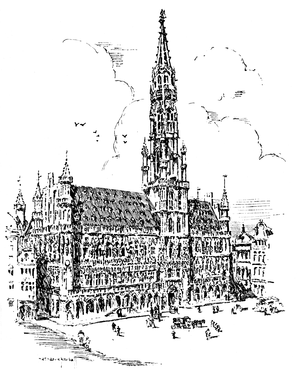 The beginning of the story of Brussels, like the beginning of the stories of most of the mediæval towns of Northern Europe, is shrouded in mystery. Set at the time of its origin in a land of marsh and wood, it probably takes its name, like so many German cities, from the natural configuration of its site and the nature of the settlement from which it was gradually evolved—Bruk Sel, the manor in the marsh. So, too, the neighbouring towns:—Antwerp, at wharf; Tervueren, [Pg 2] by the river Vuer; Schaerbeek, by the heath stream; Aerschot, the home by the water; and the sister city, the city whose history is so intricately woven with the history of the capital of Belgium that it is impossible to disentangle them, Looven, the wooded hill alongside the fen; and the province in which all these places are situated: Brabant, from Brac, uncultivated, barren, wild, and Bant, the frontier land.