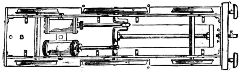 The boiler was fastened on the front of the car, which moved on three wheels—the steam acted only on the foremost wheel.