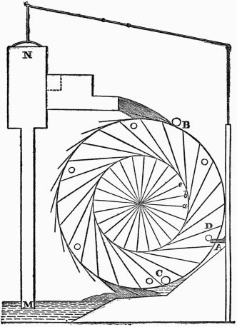 A great many similar illustrations could be given. What, then, is more natural than that a boy with an active mind who is at all mechanically turned, as most boys are, begins to wonder why, if wheels lift stones, and if stones descending make wheels run, cannot a machine be made that will lift stones, or other weights, and in turn be run by the descent of the lifted stones, or other weights? Why, if the turning of wheels lift water, and if descending water makes wheels go, should not an adaptation be made by which the same machine will elevate water, and be run by the descent of the elevated water?