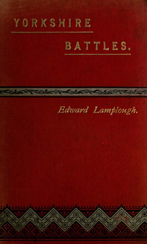 The Project Gutenberg EBook of Yorkshire Battles, by Edward Lamplough This eBook is for the use of anyone anywhere at no cost and with almost no restrictions whatsoever. You may copy it, give it away or re-use it under the terms of the Project Gutenberg License included with this eBook or online at www.gutenberg.org Title: Yorkshire Battles Author: Edward Lamplough Release Date: February 9, 2014 [EBook #44852] Language: English Character set encoding: ISO-8859-1 *** START OF THIS PROJECT GUTENBERG EBOOK YORKSHIRE BATTLES *** Produced by sp1nd and the Online Distributed Proofreading Team at http://www.pgdp.net (This file was produced from images generously made available by The Internet Archive)