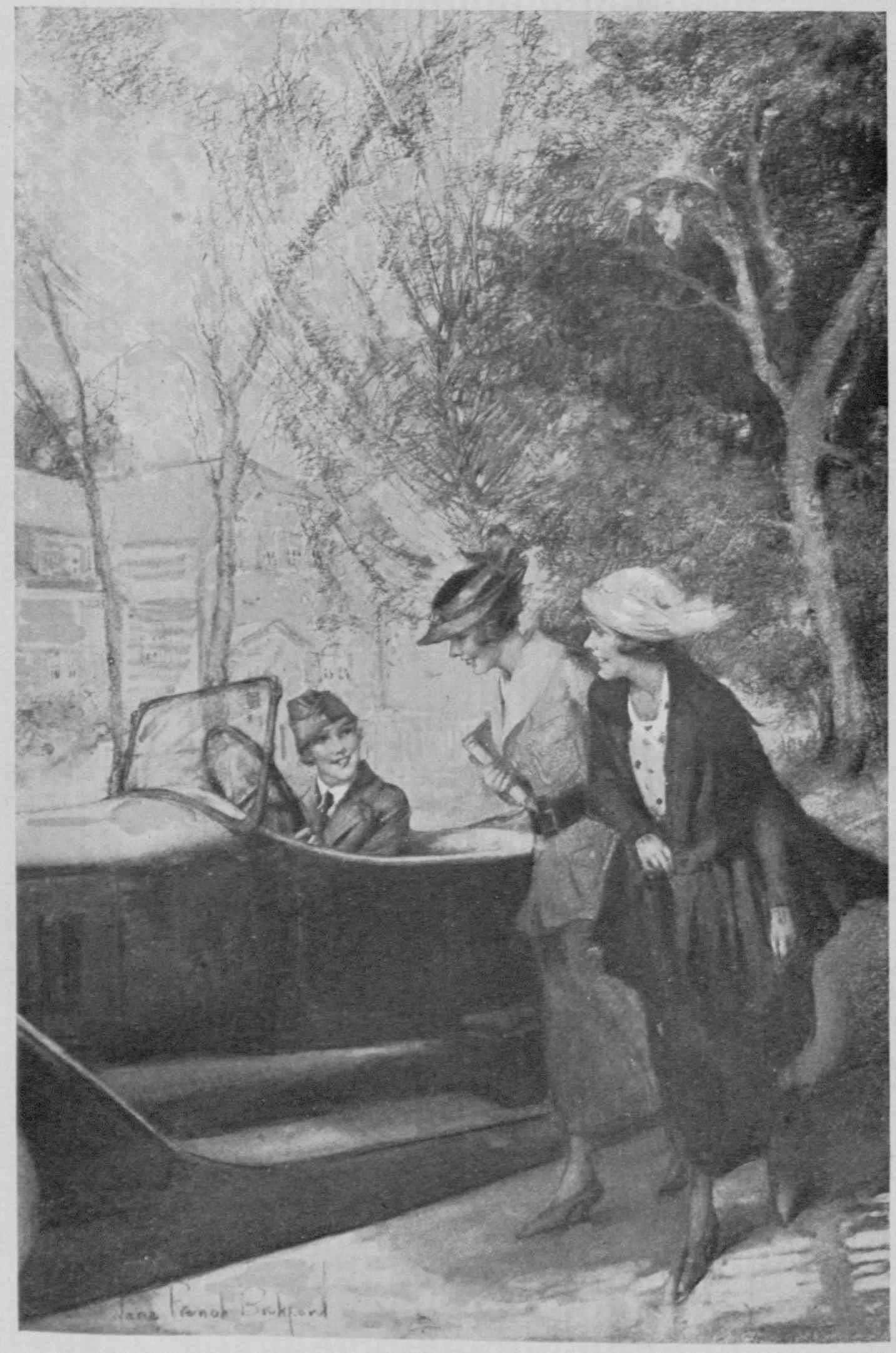 Yes, it was Grace, who, in her sprightliest manner, her face aglow from the invigorating breezes of an April afternoon, called out, “Ah there, girls! How are you? Oh, my lucky star must have guided me, for I have something thrilling to tell you!” As she spoke the girl guided the car to the curb, and the next moment, with an airy spring, had landed on the ground at their side.