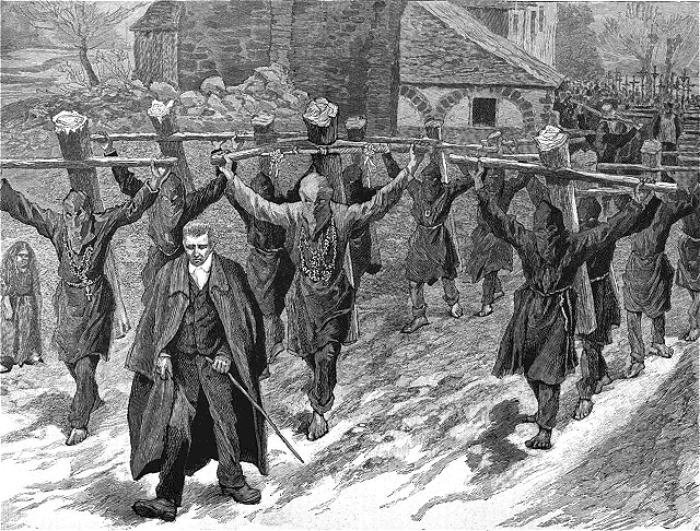Après un repos d'une demi-heure les cris des alcades se font entendre. Brutalement, à coups de badine, il font former les rangs, et tous, les uns égrenant leur chapelet, les autres récitant des oraisons, s'avancent au pas accéléré; entre les deux files se tiennent le clergé et les femmes, mères ou sœurs des pénitents. C'est un spectacle fantastique. Notre dessin représente la procession au moment où elle passe devant l'ossuaire qui renferme les restes des compagnons de Roland.