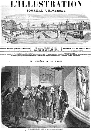 Nassr-ed-Din n'a plus que quelques jours à passer à Paris. Le départ du shah est fixé pour le 21 juillet. Celles des Parisiennes qui n'ont pu encore réussir à voir de près ce prince tant entouré de pierreries sont à deux doigts du désespoir. Chacune d'elles ressemble volontiers à cette petite reine de Saba qui ne voulait pas mourir avant d'avoir contemplé Salomon «dans toute sa gloire». On ne saurait imaginer combien elles dépensent de génie pour savoir où le visiteur portera ses pas cette semaine. «Verrai-je l'aigrette? Ne la verrai-je pas?» On les rencontre partout où se montre un Persan, au Jardin des Plantes, à la Bibliothèque, au parc de Monceau. «Monsieur le Persan, l'aigrette est-elle sortie aujourd'hui? Où peut-on la voir?» L'Iranien sourit, hoche la tête et répond: «Nous nous préparons à aller à Vienne.» Voilà tout ce que les plus jolies et les plus captieuses parviennent à en tirer.