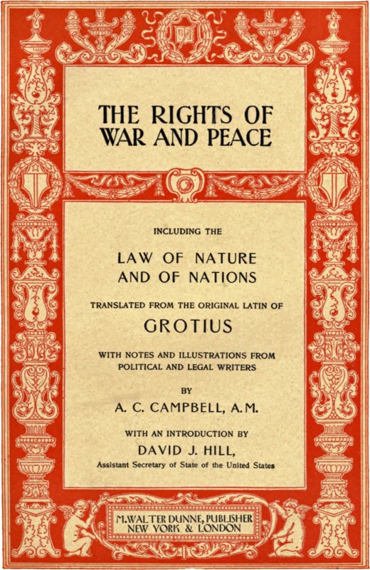 When the Publisher determined, under the advice of his Editorial Council, to publish Grotius, he found that only two volumes of the first edition were available in the Library of Congress. At much expense and trouble, he instituted a search in Europe and finally obtained the missing volume, which he presented to the Congressional Library, where it now is.