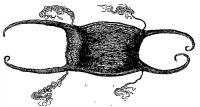 Fig. 8 is the egg of our common skate; the four hair-like appendages attached to the sides are tangles composed of a fine silk-like material. The skate, after laying an egg, takes it in her mouth and carries it to the nearest broken oyster or clam shell, and entangles or fastens it by means of the silk-like appendages, otherwise it would be driven ashore on the first storm.