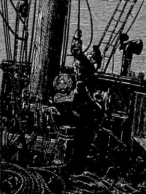 Charley, leaving his companions near the fore-rigging, went out and loosed the jib and flying-jib, and when this was done, returned and showed them where the halyards were. The flying-jib was hoisted without much difficulty, but the jib was heavier, and the boys found it necessary to take the halyards to a "gypsy," which is something like a small windlass, with the aid of which the obstinate sail was soon hoisted. The sheets were then trimmed flat, and the pressure of the wind on the sails forced the brig's head around so that she no longer lay with her broadside to the wind and sea. The foretopmast stay-sail had evidently been set during the gale, for it had been blown away, and nothing remained of it but a few shreds clinging to the bolt-ropes.