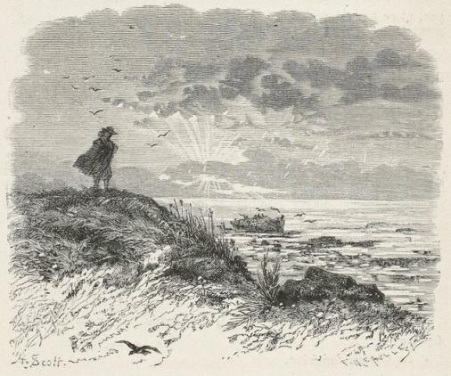 The woman looked at him in terror. She was thin, young, pale, and in tatters. She wore the large hood and woollen cloak of the Breton peasants, fastened by a string around her neck. She left her bosom exposed with the indifference of an animal. Her feet, without shoes or stockings, were bleeding.