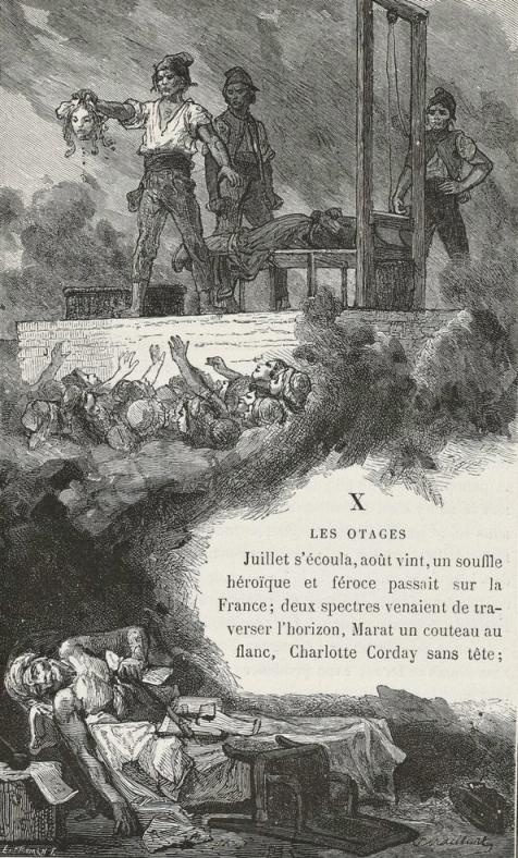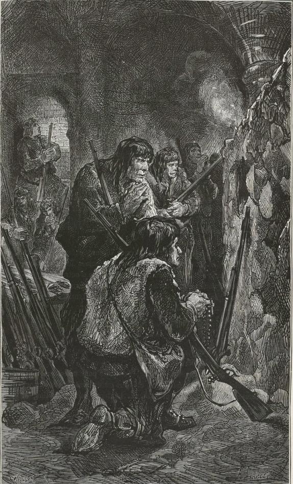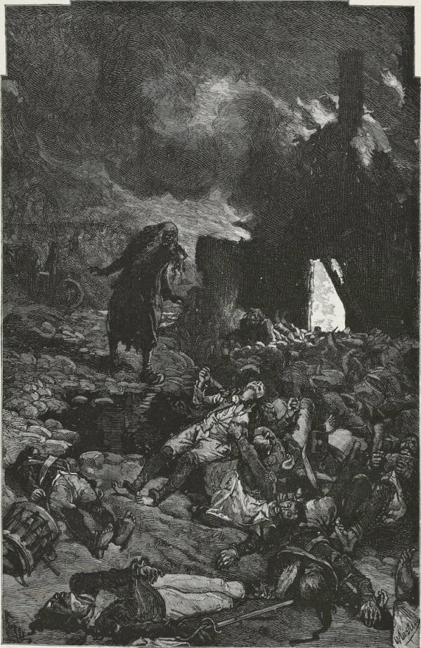 On the 28th of April the Paris Commune had given to the volunteers of Santerre the following order: "No mercy, no quarter." Of the twelve thousand that had left Paris, at the end of May eight thousand were dead. The battalion which was engaged in La Saudraie held itself on its guard. There was no hurrying: every man looked at once to right and to left, before him, behind him. Kléber has said: "The soldier has an eye in his back." They had been marching a long time. What o'clock could it be? What time of the day was it? It would have been hard to say; for there is always a sort of dusk in these wild thickets, and it was never light in that wood. The forest of La Saudraie was a tragic one. It was in this coppice that from the month of November, 1792, civil war began its crimes; Mousqueton, the fierce cripple, had come forth from those fatal thickets; the number of murders that had been committed there made one's hair stand on end. No spot was more terrible.