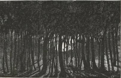 The soldiers advanced silently, step by step, gently pushing aide the underbrush. The birds twittered above the bayonets.