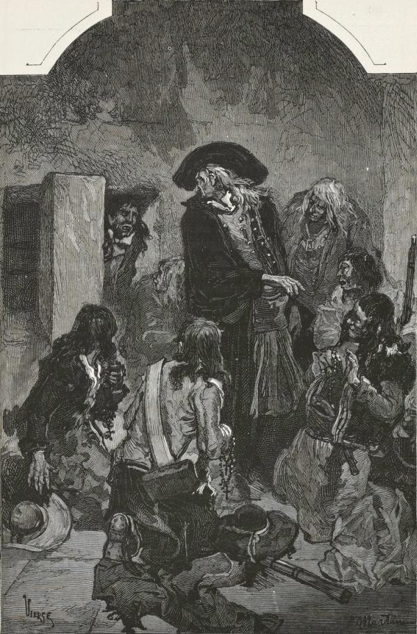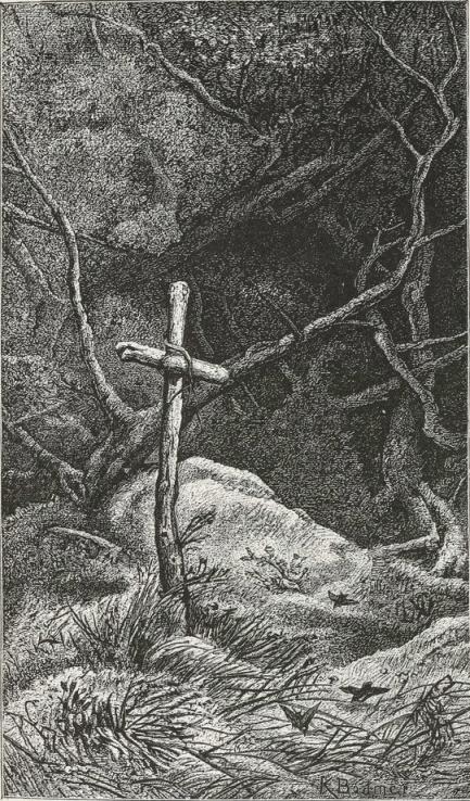From time to time they encountered traces of encampments,—a burnt place, trampled grass, sticks arranged in the form of a cross, or branches spattered with blood. Here, soup had been made; there, Mass had been said; yonder, wounds had been dressed. But whoever had passed that way had vanished. Where were they? Far away, perhaps; and yet they might be very near, hiding, blunderbuss in hand. The wood seemed deserted. The battalion redoubled its precaution. Solitude, therefore distrust. No one was to be seen; all the more reason to fear some one. They had to do with a forest of ill-repute.