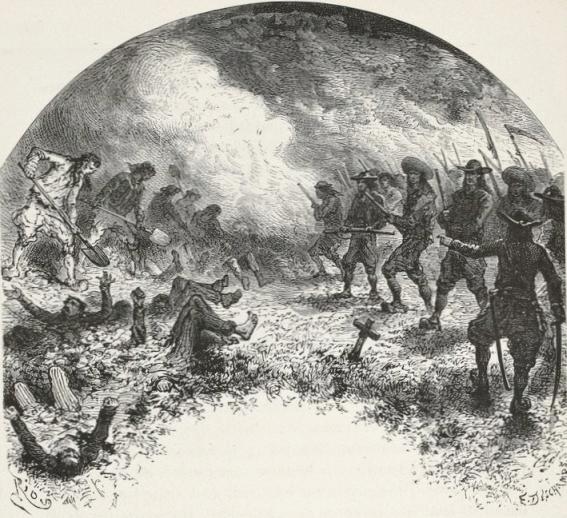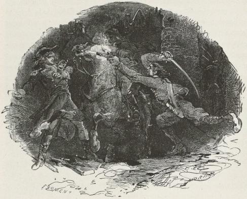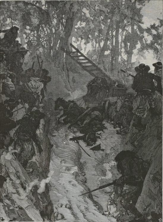 And turning to the soldiers, "Do not fire!" she cried, and rushed into the thicket, followed by the men.