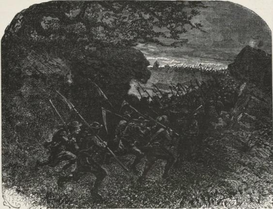 Thirty grenadiers, detached as scouts and commanded by a sergeant, marched ahead, at a considerable distance from the main body. The vivandière of the battalion accompanied them. The vivandières like to join the vanguard; they run risks, but then they stand a chance of seeing something. Curiosity is one of the forms of feminine courage.